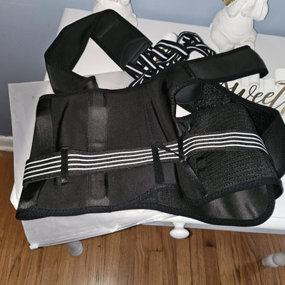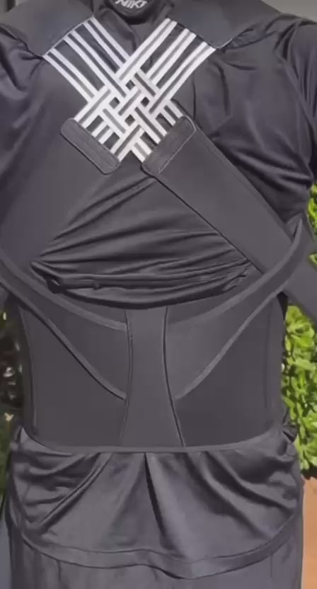 Ponte el corrector como un chaleco y ajusta las correas hasta sentir firmeza sin incomodidad.